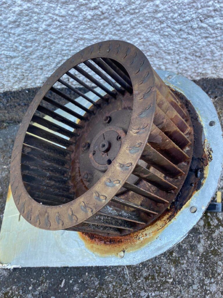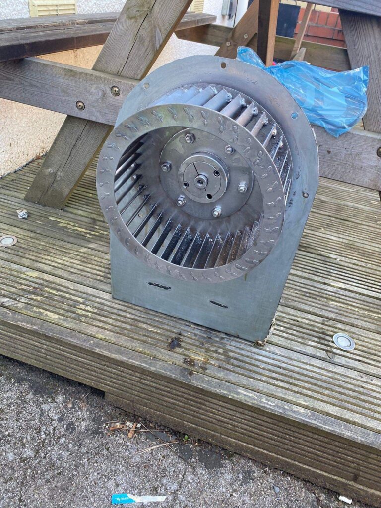 You can see the difference cleaning make. This is the fan that sits within the extraction system. I think you will agree it looks miles better.